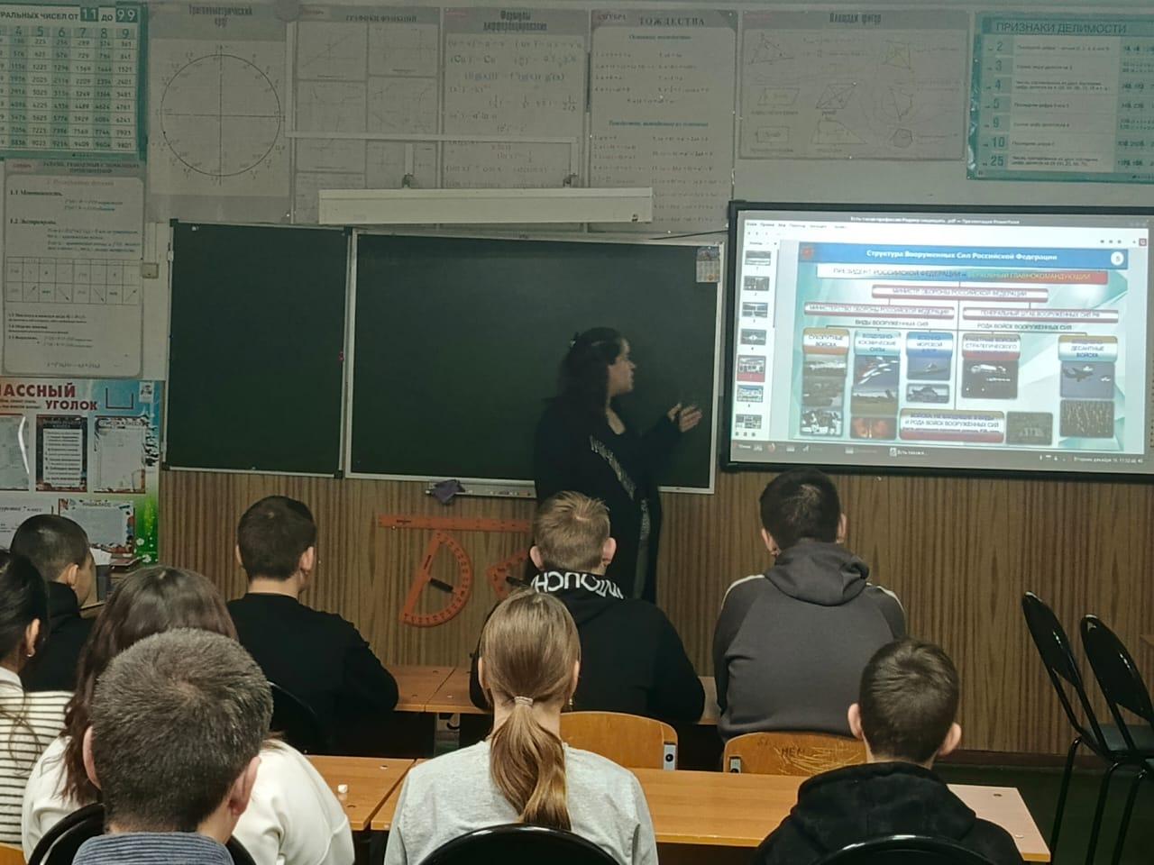Особое внимание было уделено вопросам поступления в высшие и средние специальные учебные заведения, готовящие кадры для Вооруженных Сил Российской Федерации. Учащиеся узнали о том, какие существуют военные вузы и училища, какие специальности там можно получить, и какие вступительные испытания необходимо пройти.